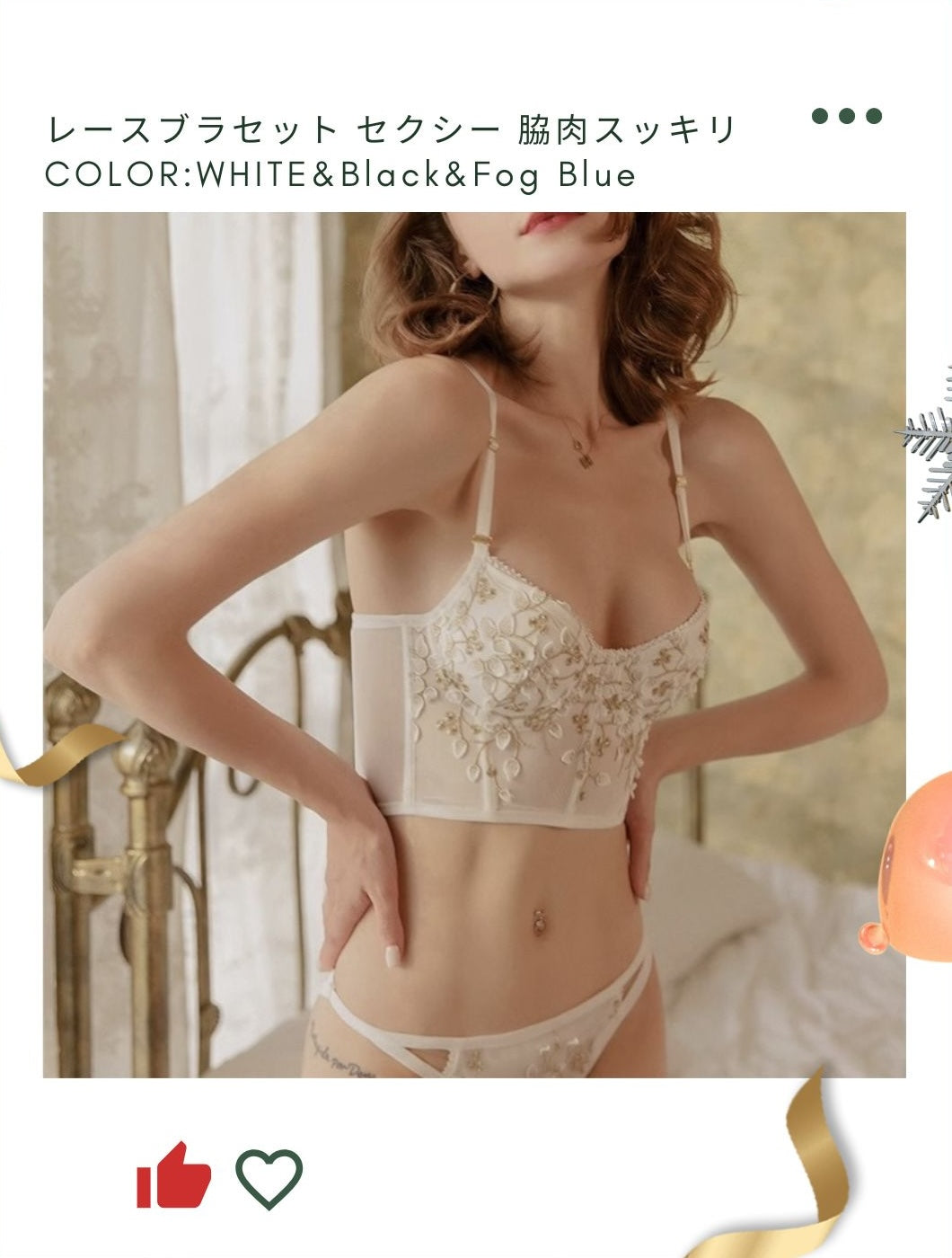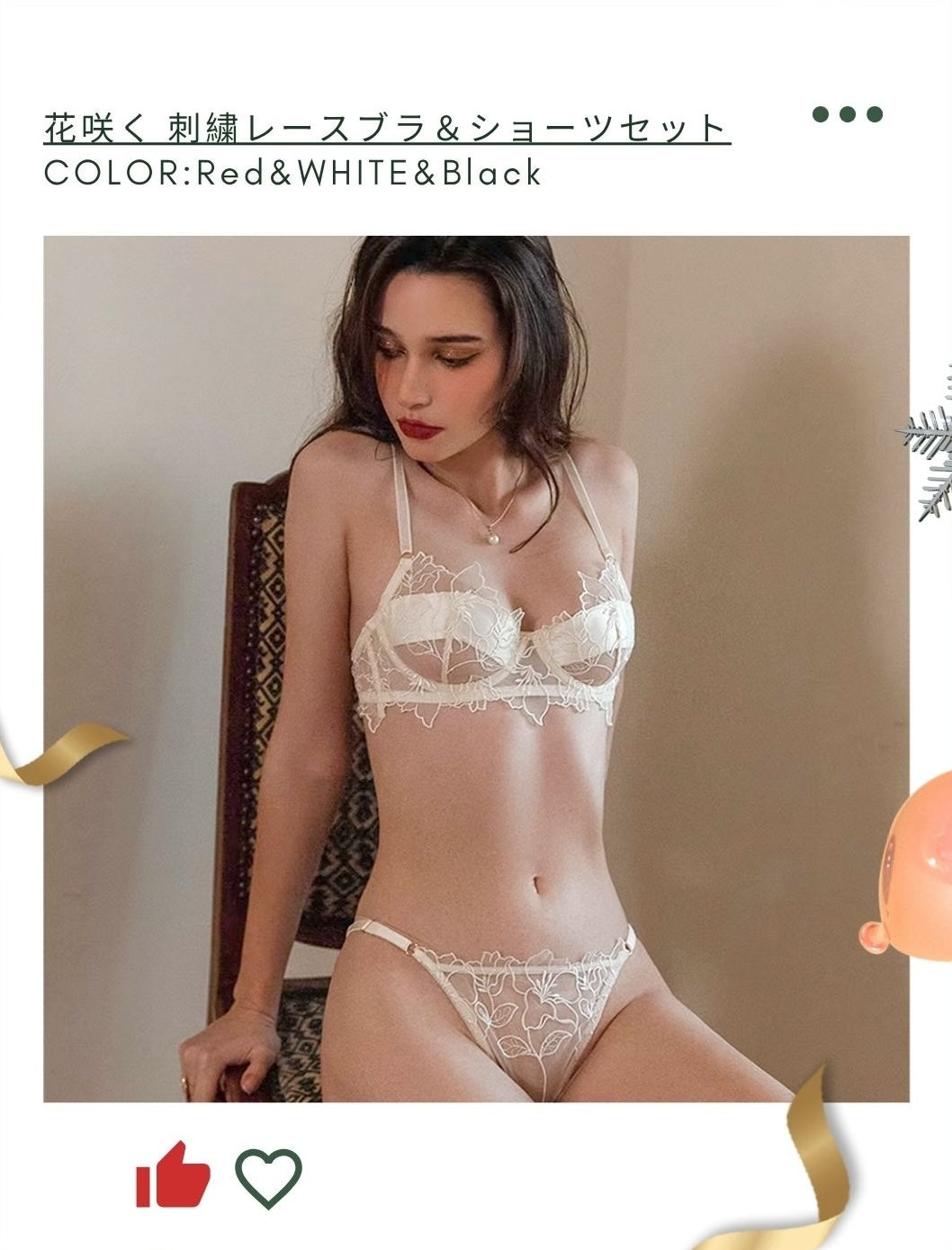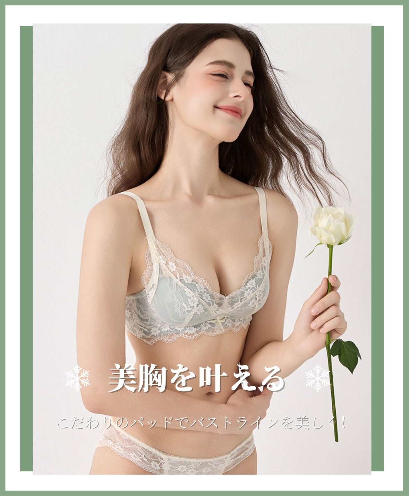 【ノンパテッド・ワイヤー入り】花咲く 刺繍レースブラ&ショーツセット ノンワイヤータイプ新入荷!