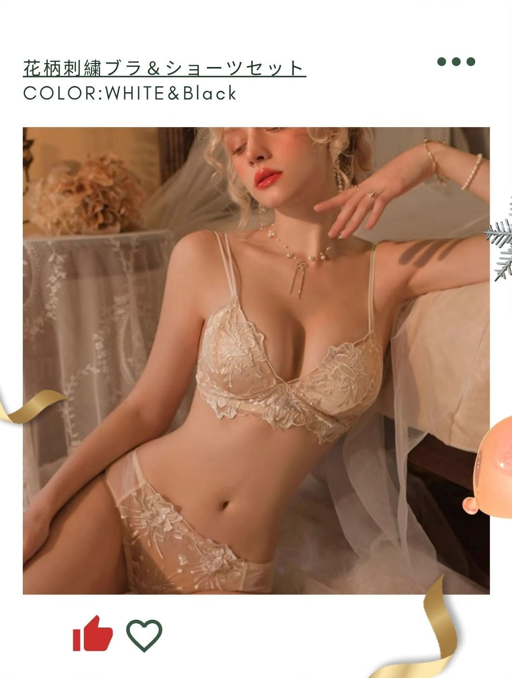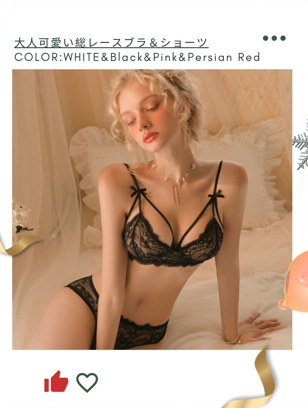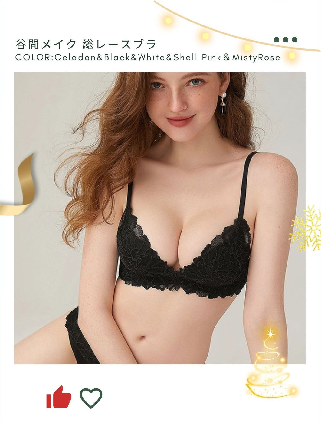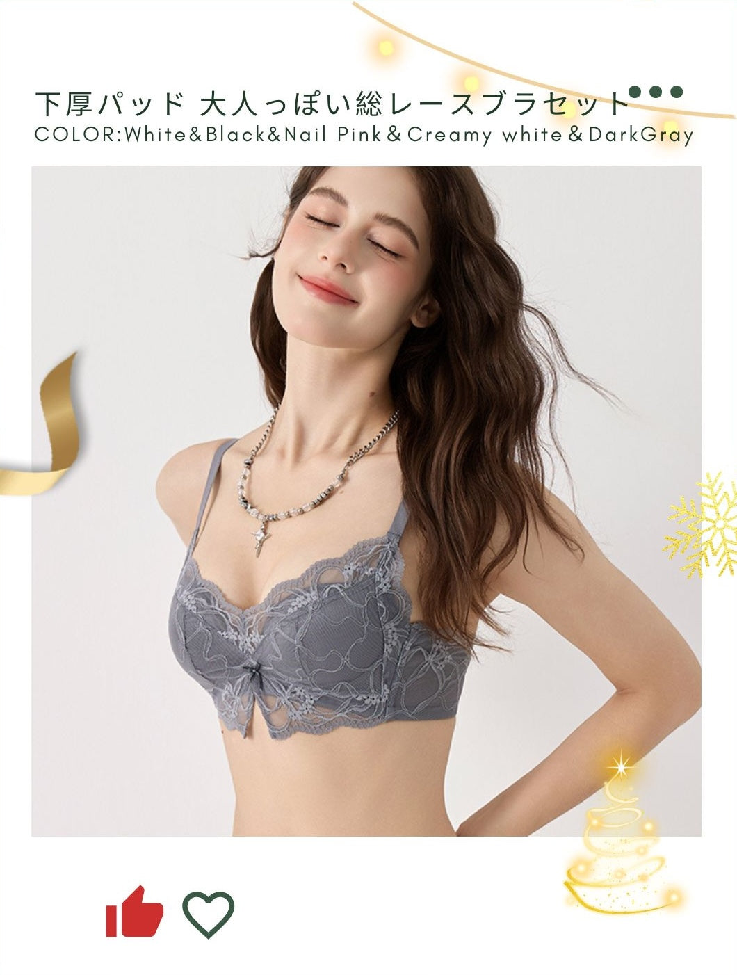 【ノンワイヤー盛れる】下厚パッド 大人っぽい総レースブラ&ショーツ