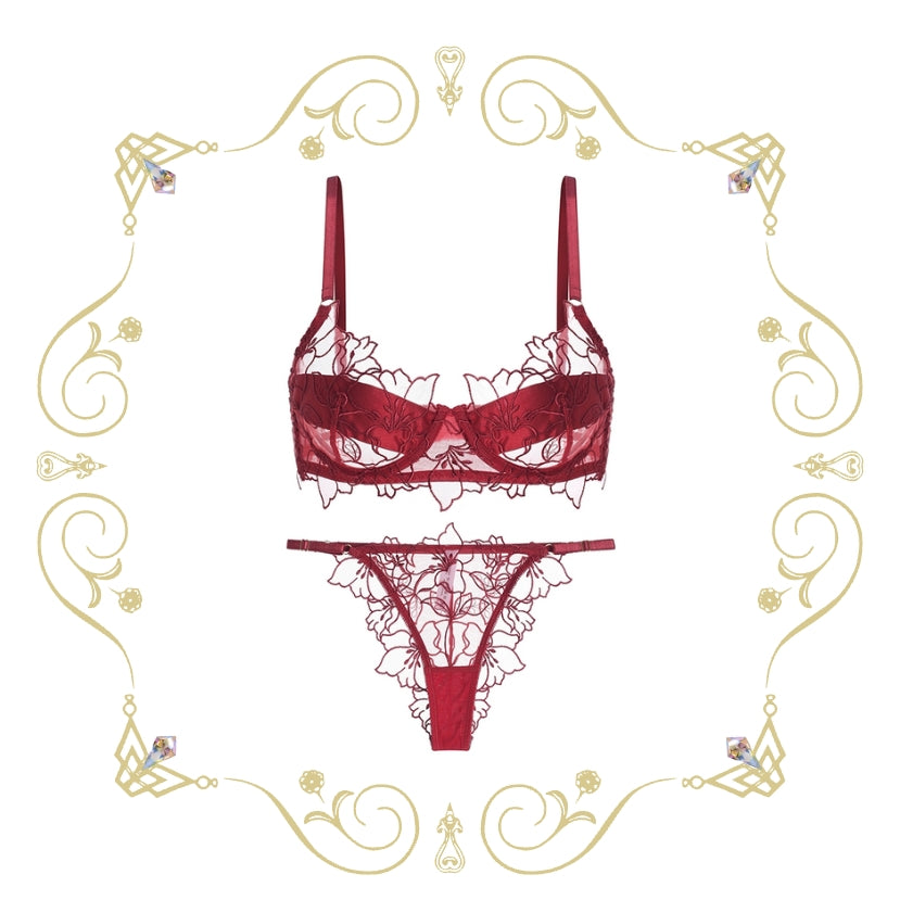 【エアリー・ワイヤー入り】ローズ柄 1/2カップブラセット 【エアリー・ワイヤー入り】ローズ柄 1/2カップブラセット