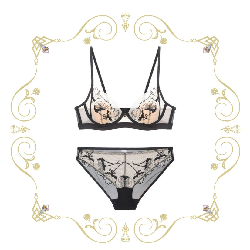【ノンワイヤー】ローズ刺繍 フランススタイルブラ&ショーツセット