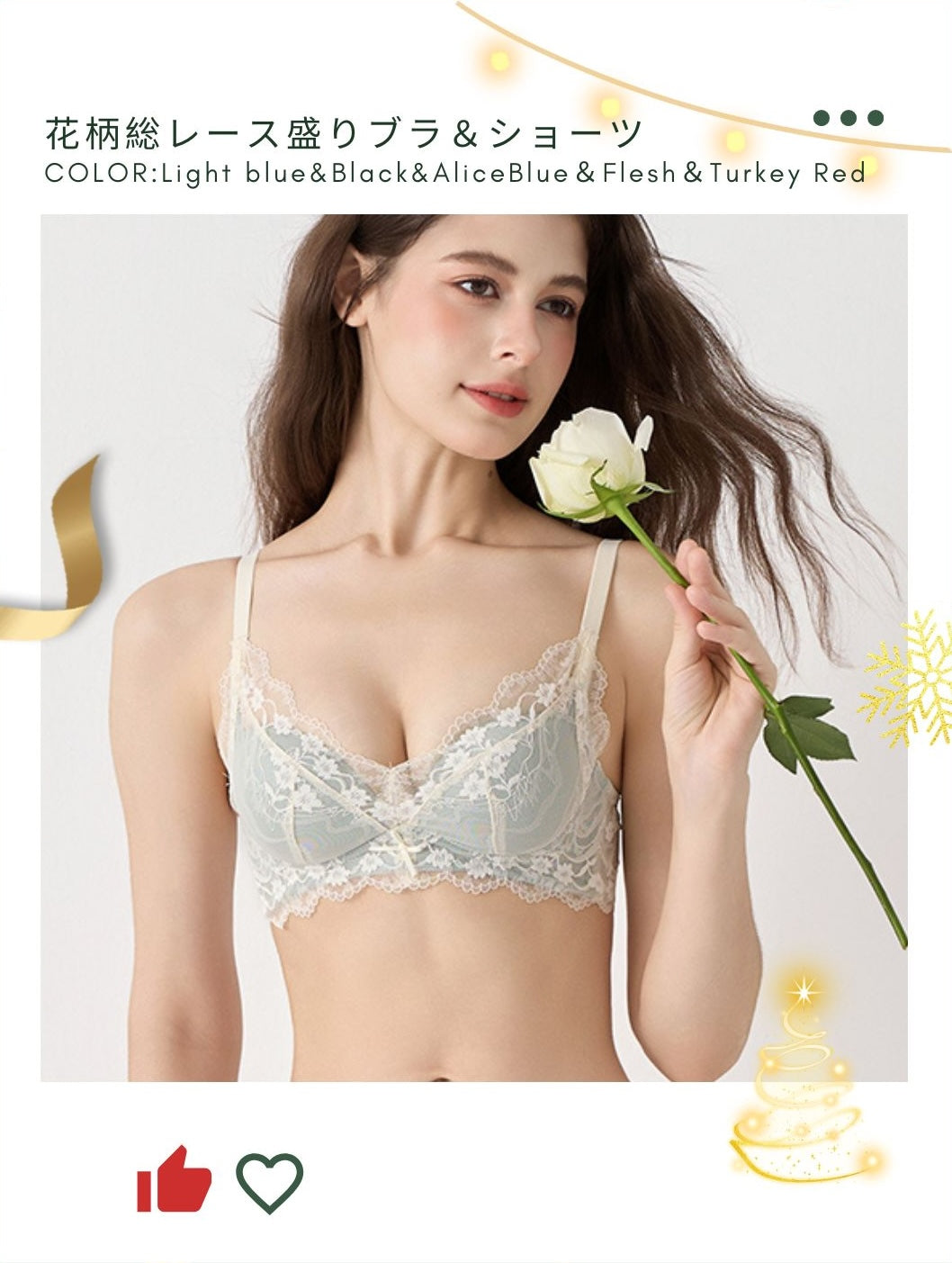 【ノンワイヤー盛れる】花柄総レース盛りブラ&ショーツ