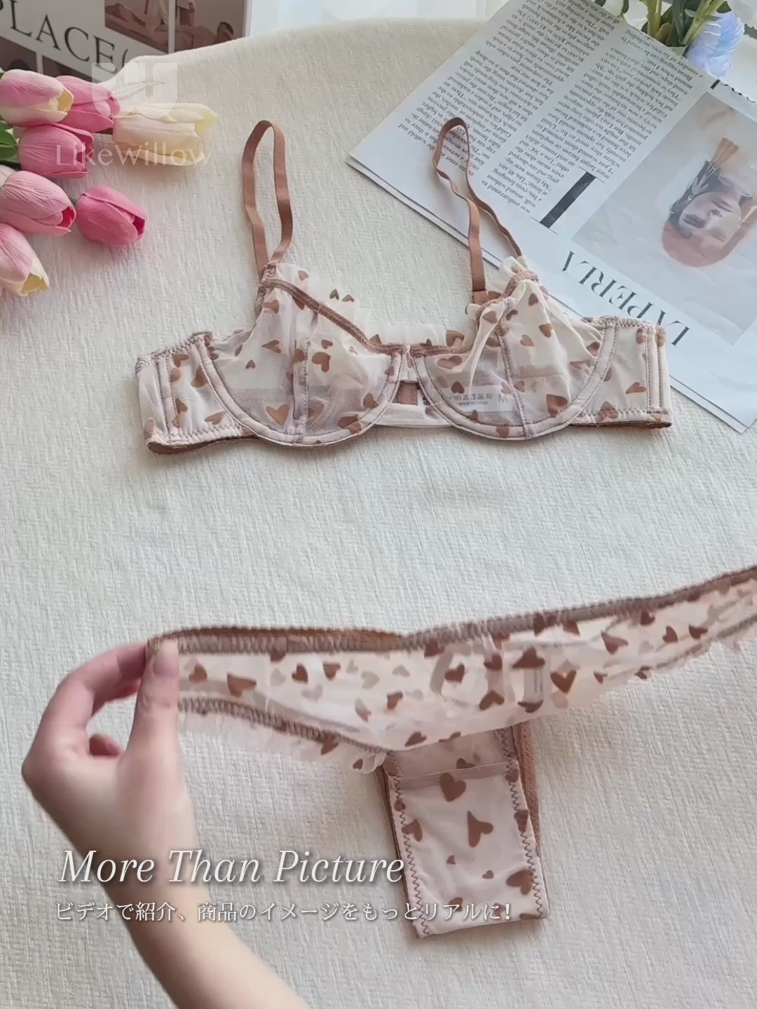 【Goddess Series】ハート柄シアーレースブラ&ショーツ