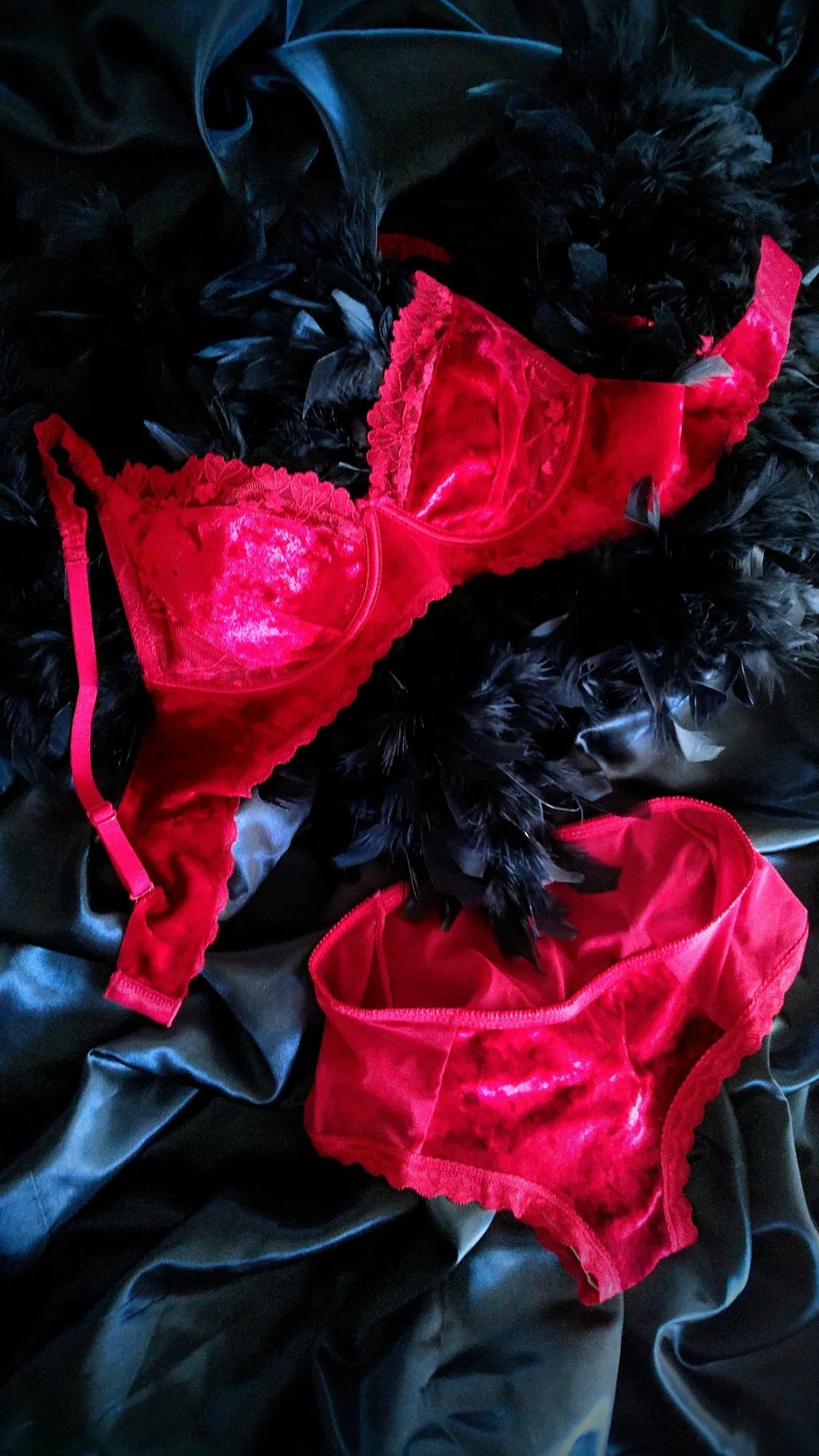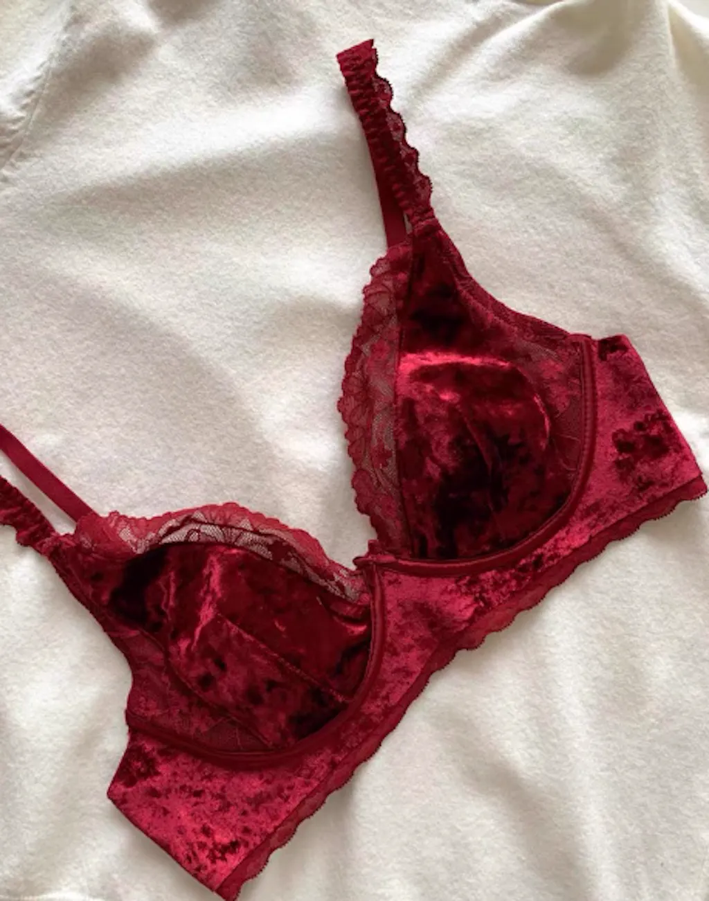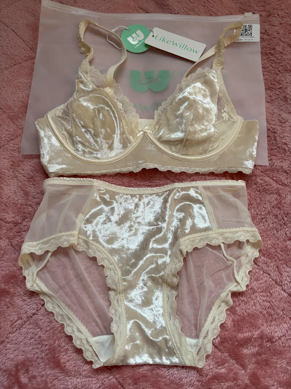 【エアリー・ノンワイヤー】上品な光沢のベロア&レース ブラ&ショーツ