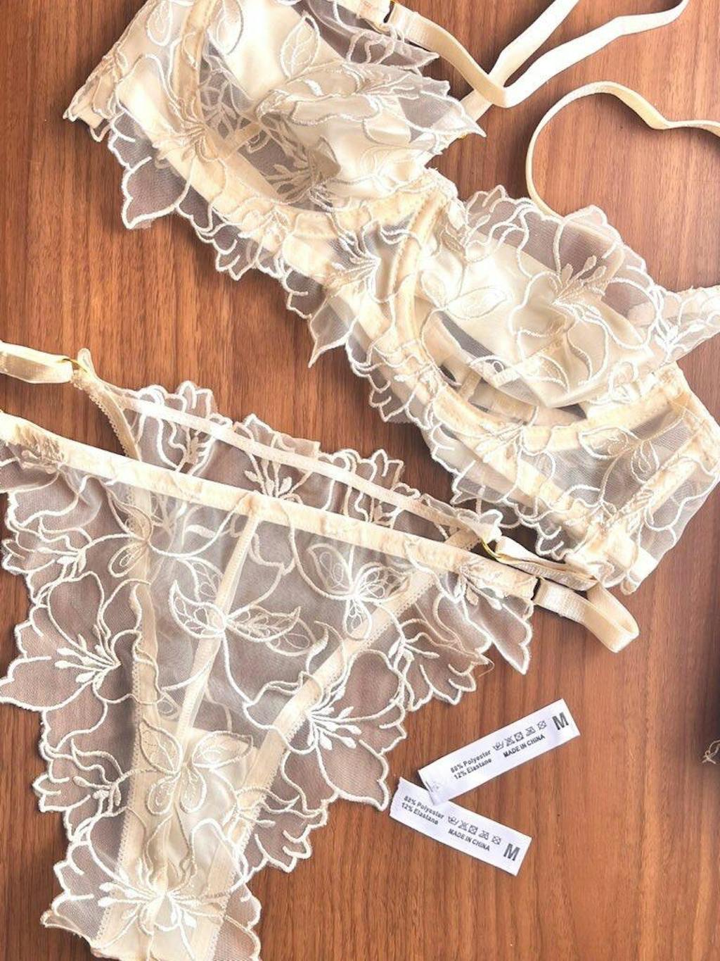 【ノンパテッド】花咲く 刺繍レースブラ&ショーツセット