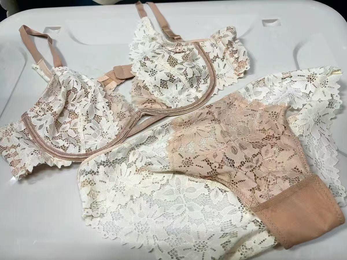 ブラジャーメッシュ:85%ポリエステル 15%ポリウレタンショーツメッシュ:85%ポリエステル 15%ポリウレタンレース:88%ナイロン 12%ポリウレタンクロッチ部分:100%コットン
