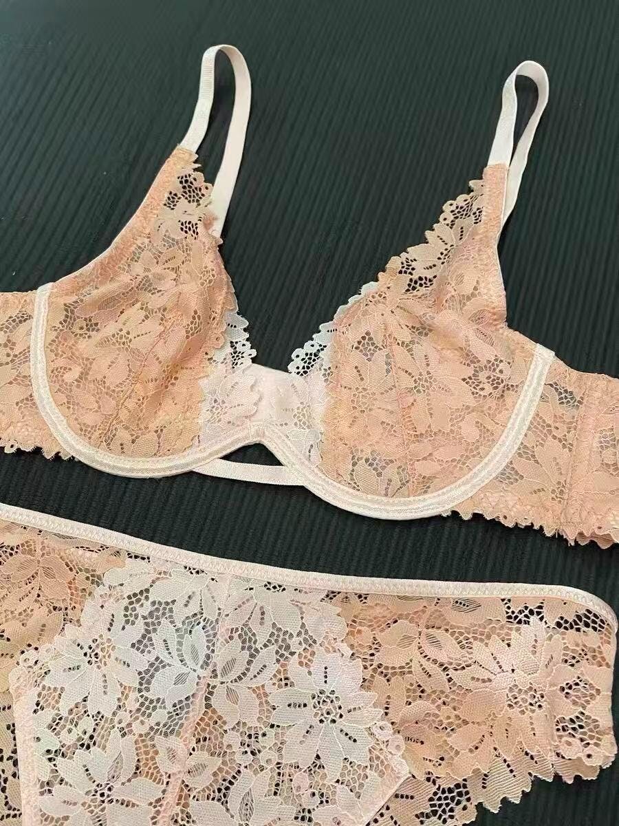 繊細なレースで、女性をより美しく魅せるのセクシーブラセット。