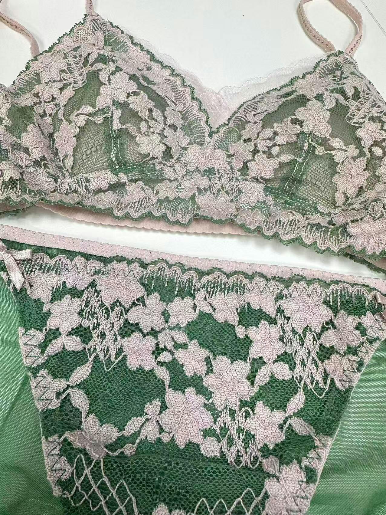 【ノンワイヤー】軽やかな着心地 総レース配色ブラ&ショーツ