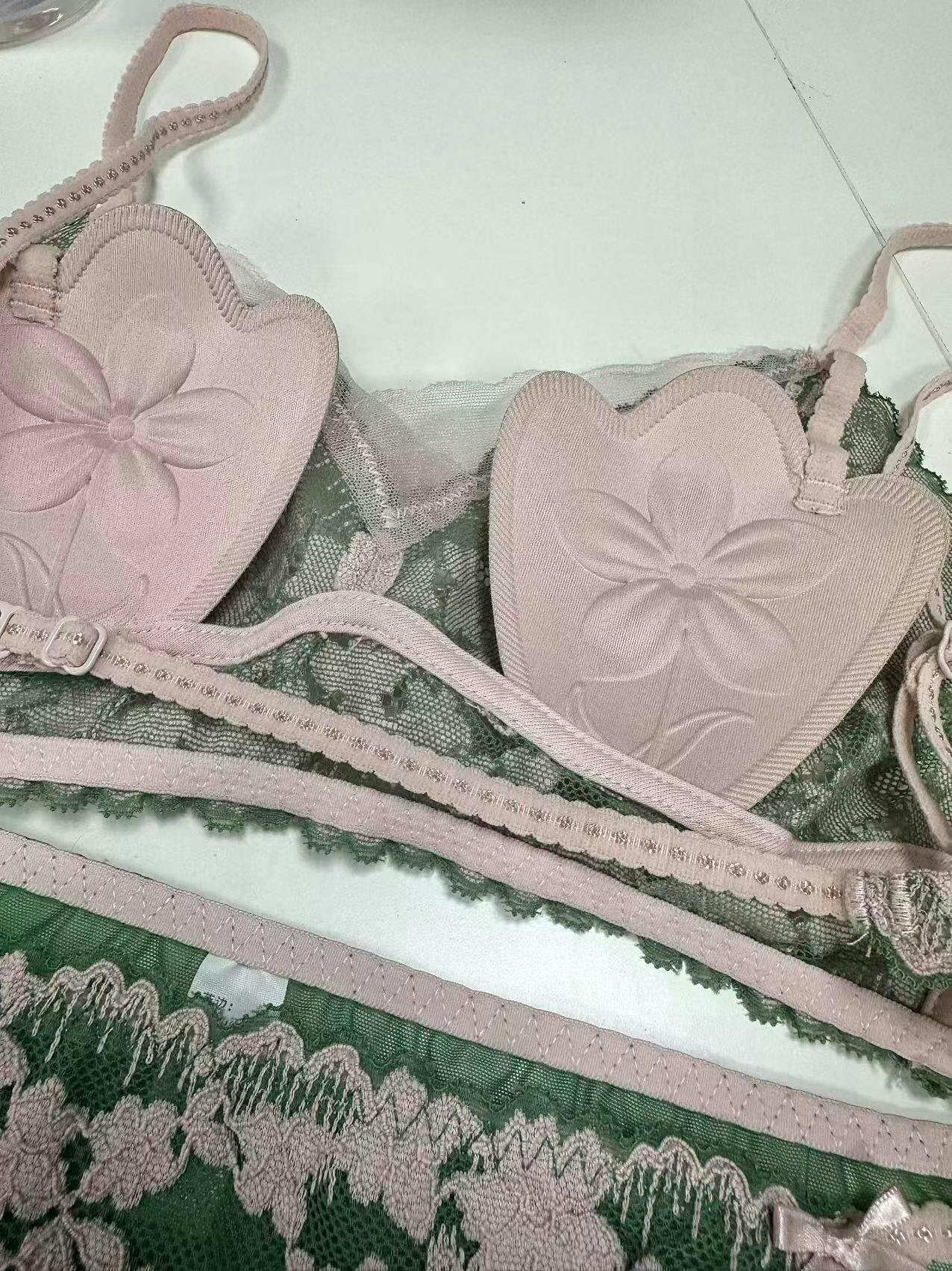ブラジャー生地1: 68%ナイロン 32%ポリウレタン生地2: 59%コットン 33%ナイロン 8%ポリウレタンカップ裏地:100%ポリエステルショーツレース部分:59%コットン 33%ナイロン 8%ポリウレタン生地:85%ナイロン 15%ポリウレタンクロッチ部分:100%コットン