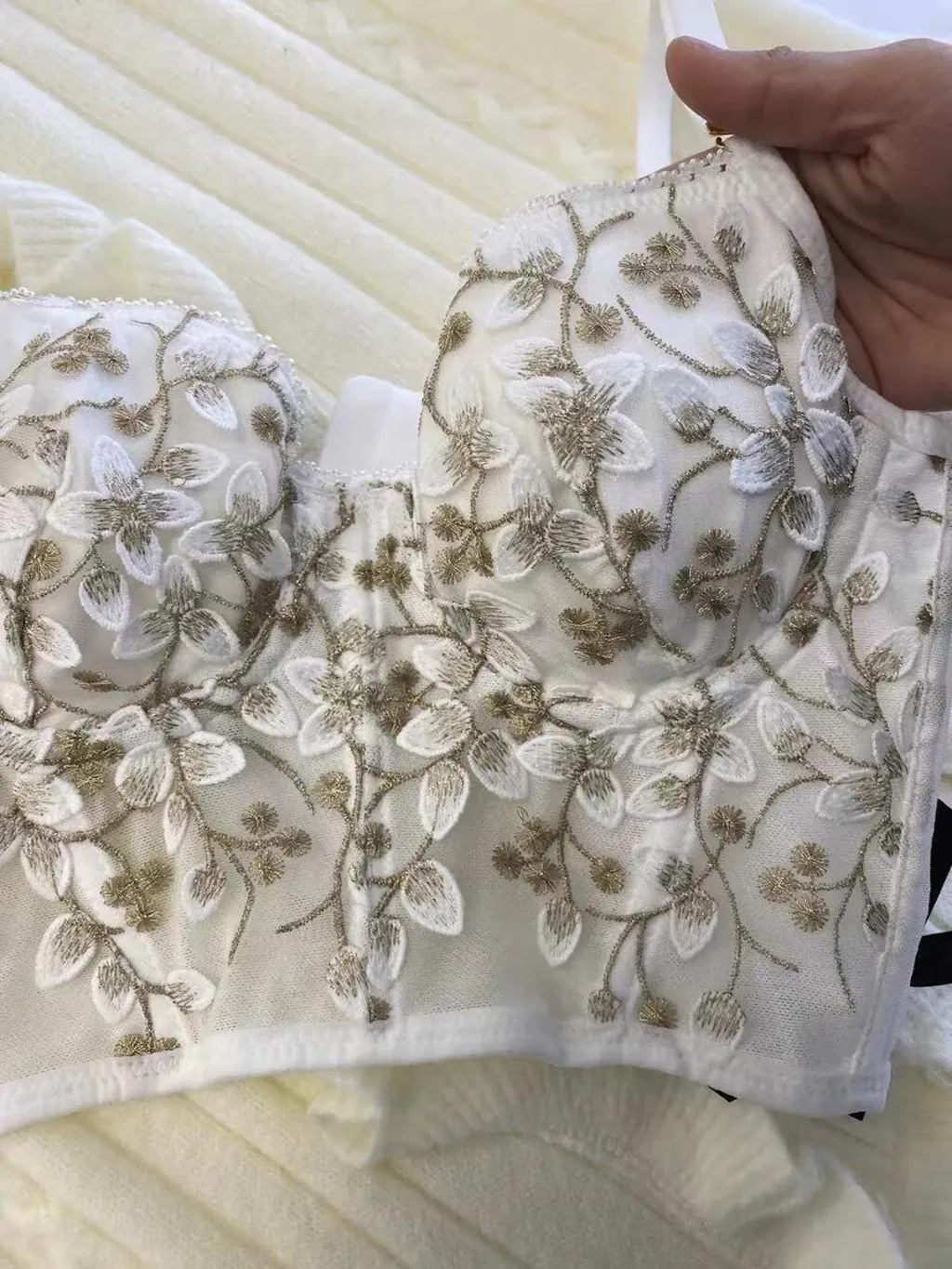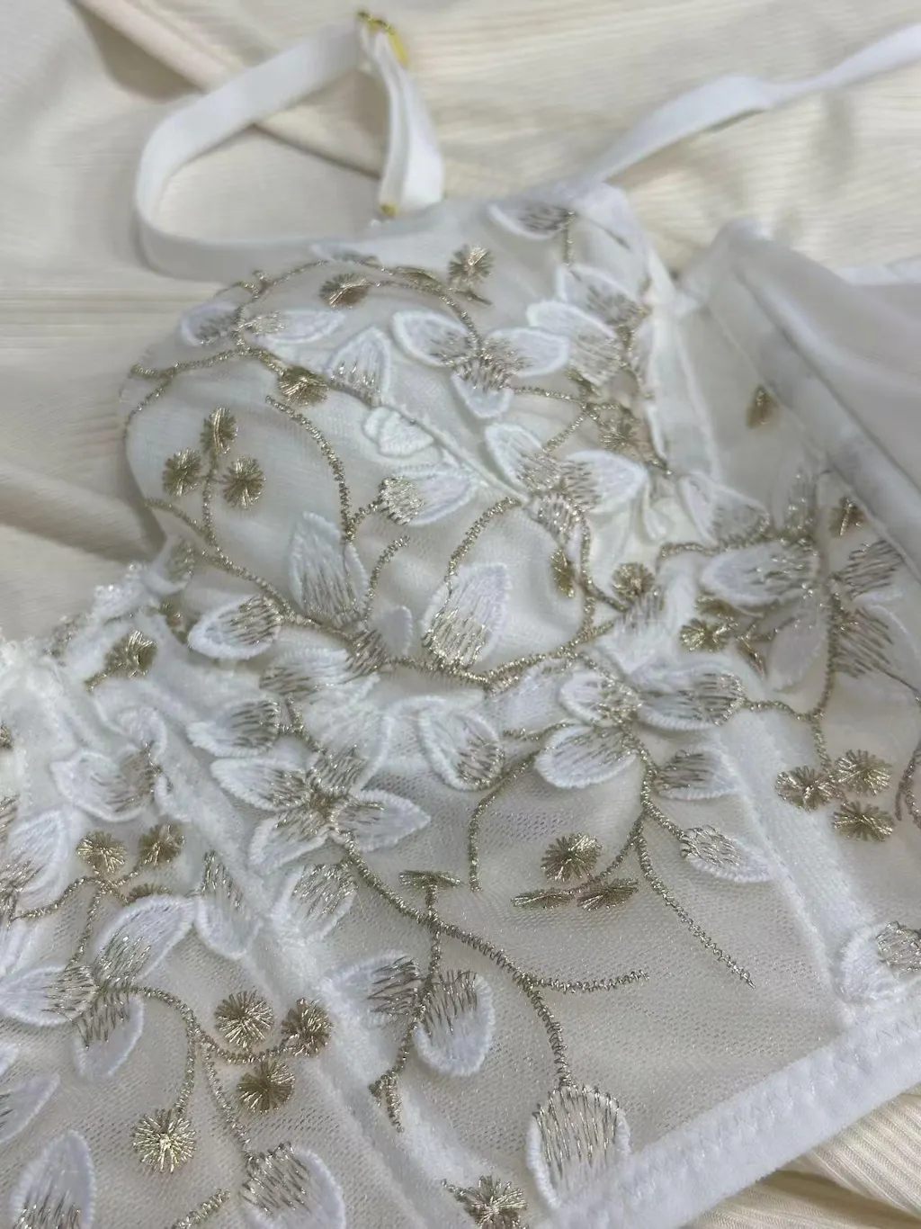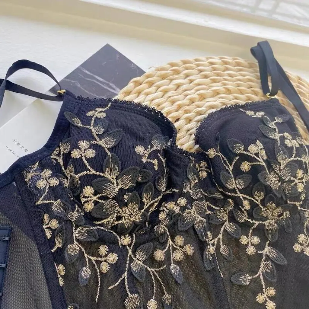 - リーフ刺繍の飾りを施した、 華やかな見た目で女性らしさを際立たせてくれるランジェリー