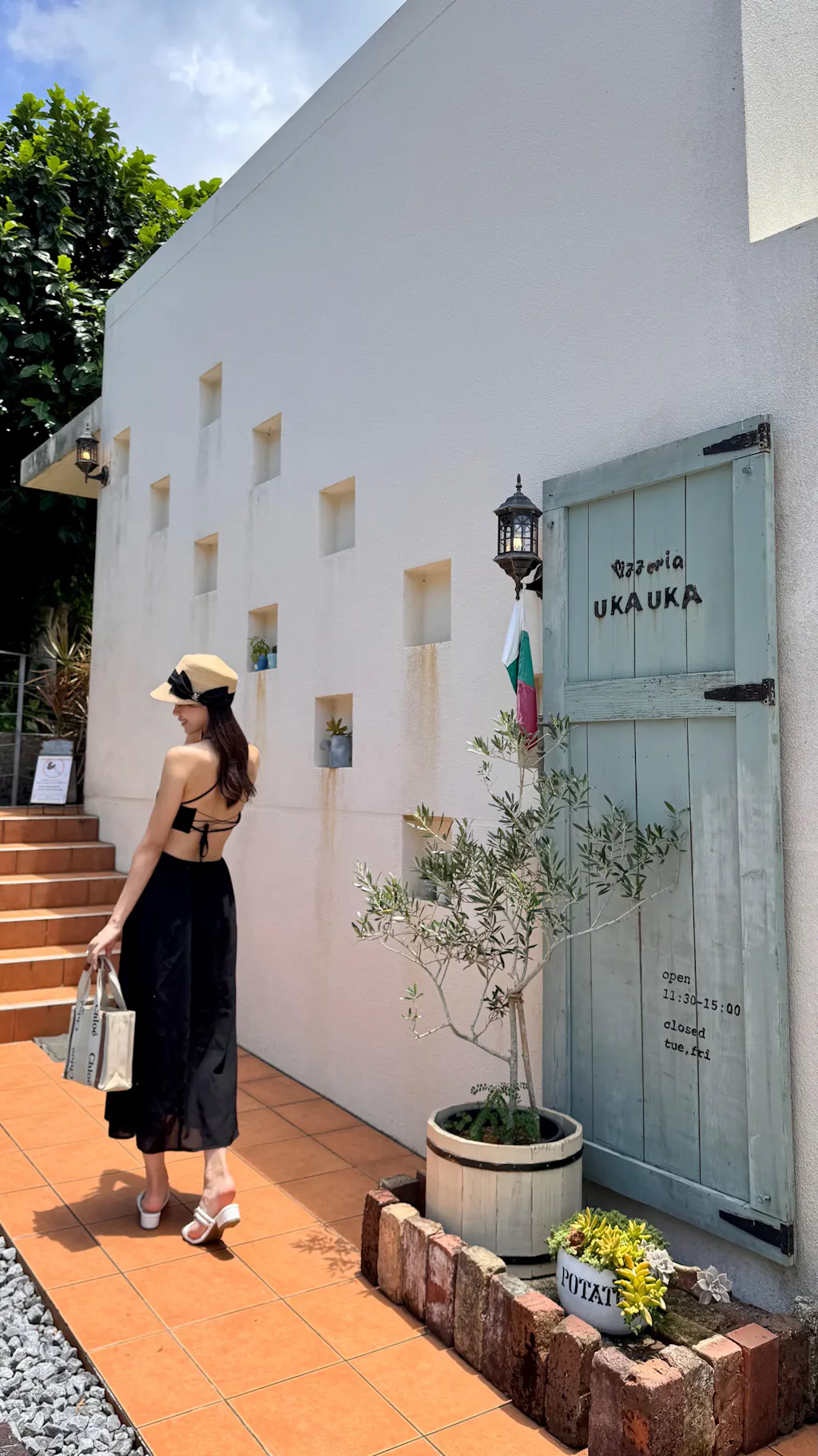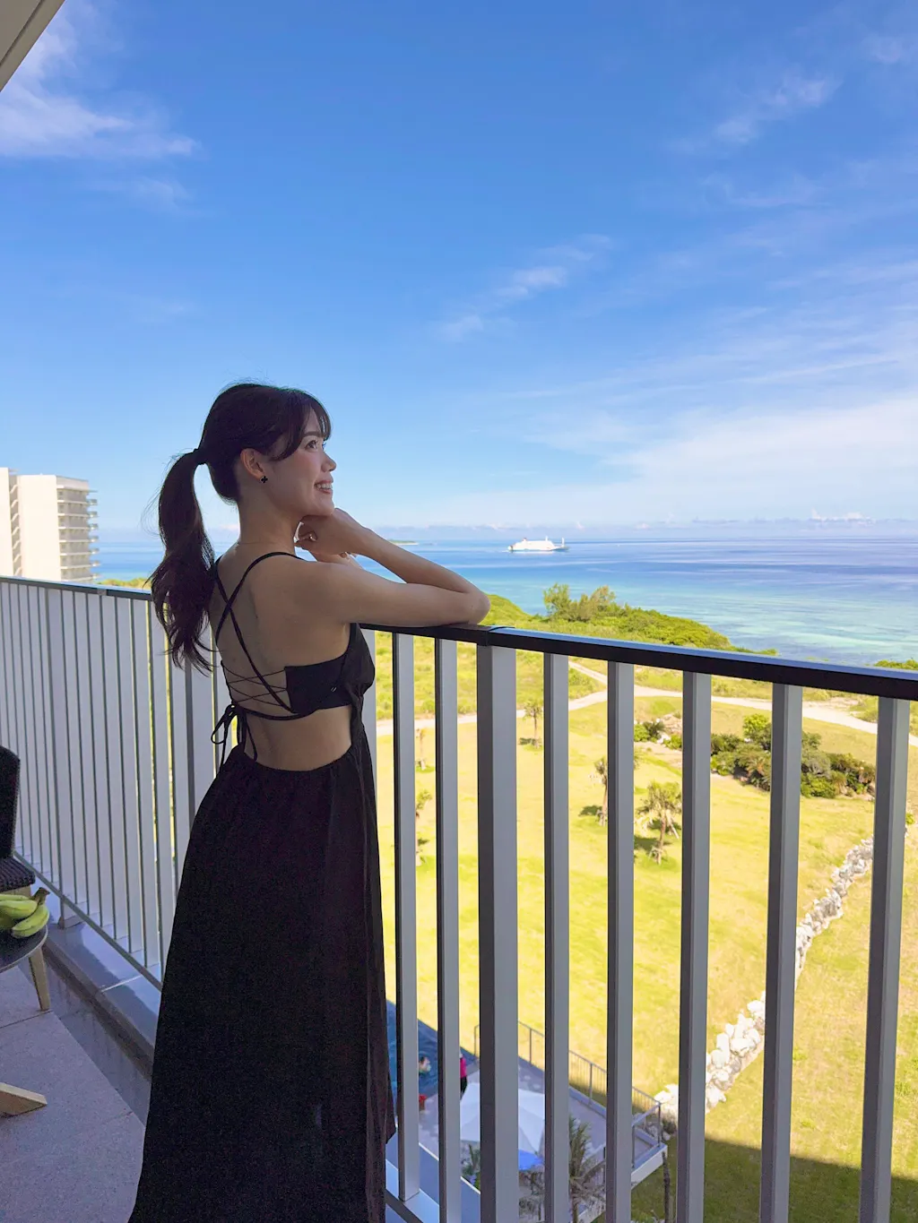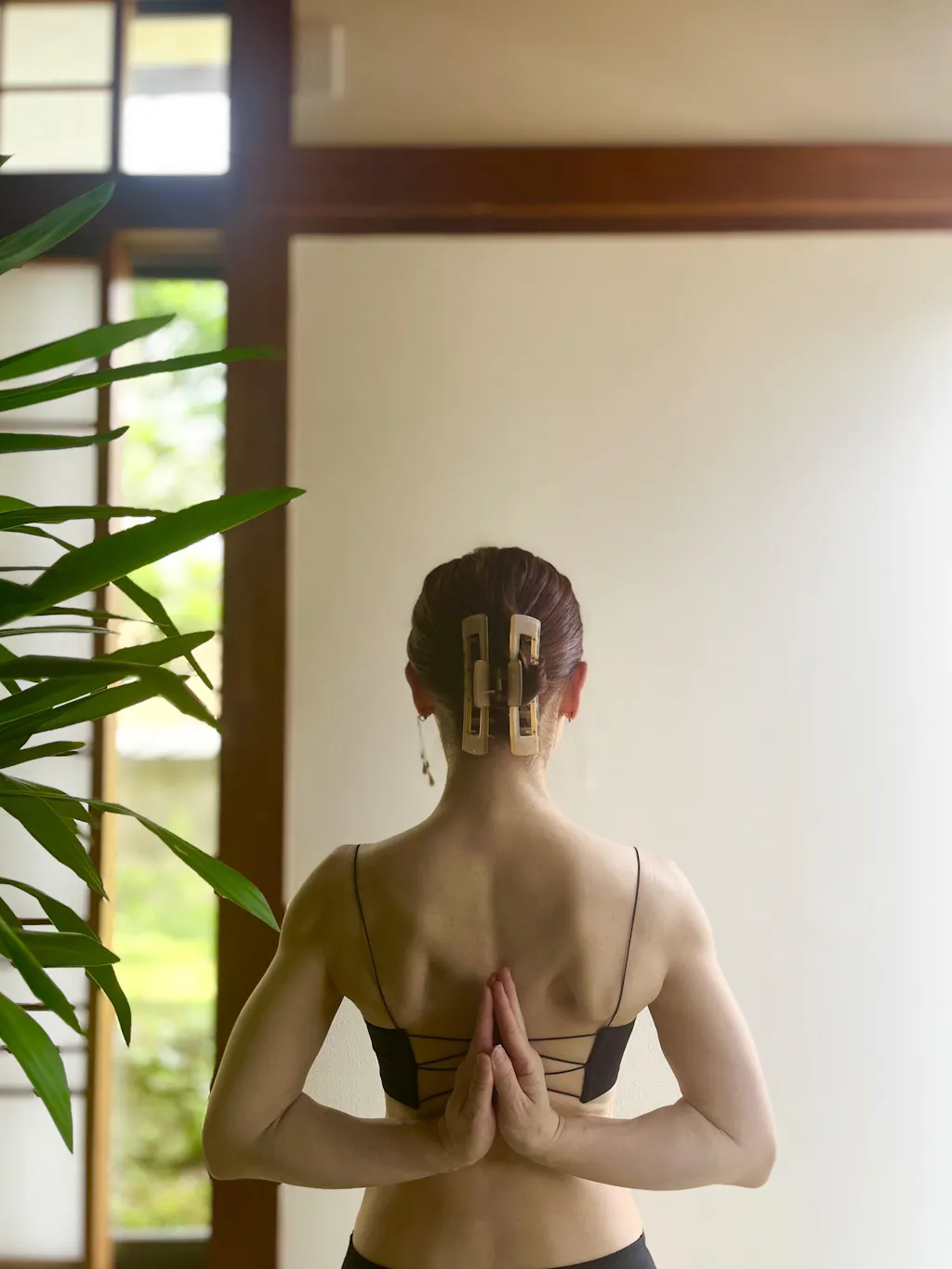 バックスタイルは細めのクロスデザインで、背中の開いた服とも好相性です。