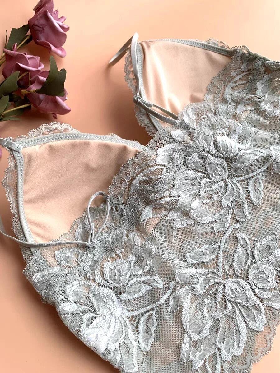高級感漂う大柄のストレッチレースをふんだんに使い、大胆なVラインがつけていて満足度も高い一枚。