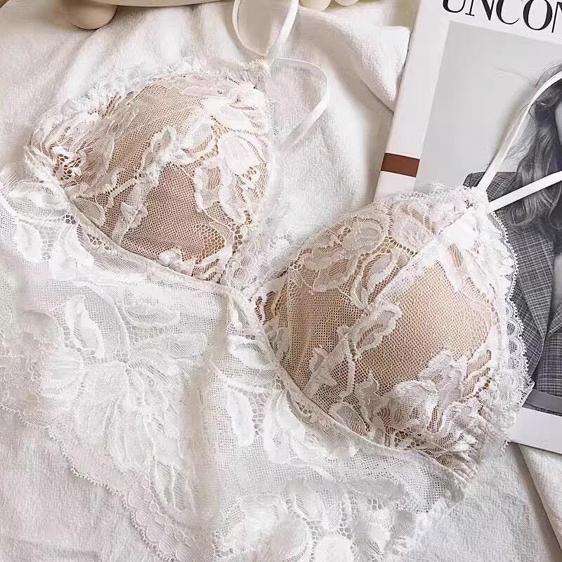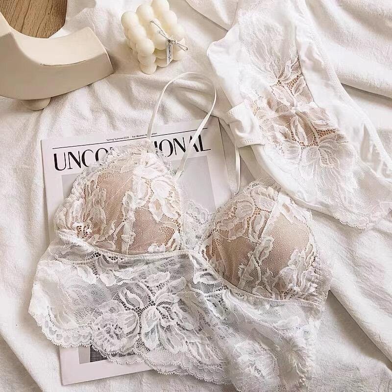奥行き感のある繊細なお花のフレンチレースで、ちらりと透けて見える肌を美しく♪