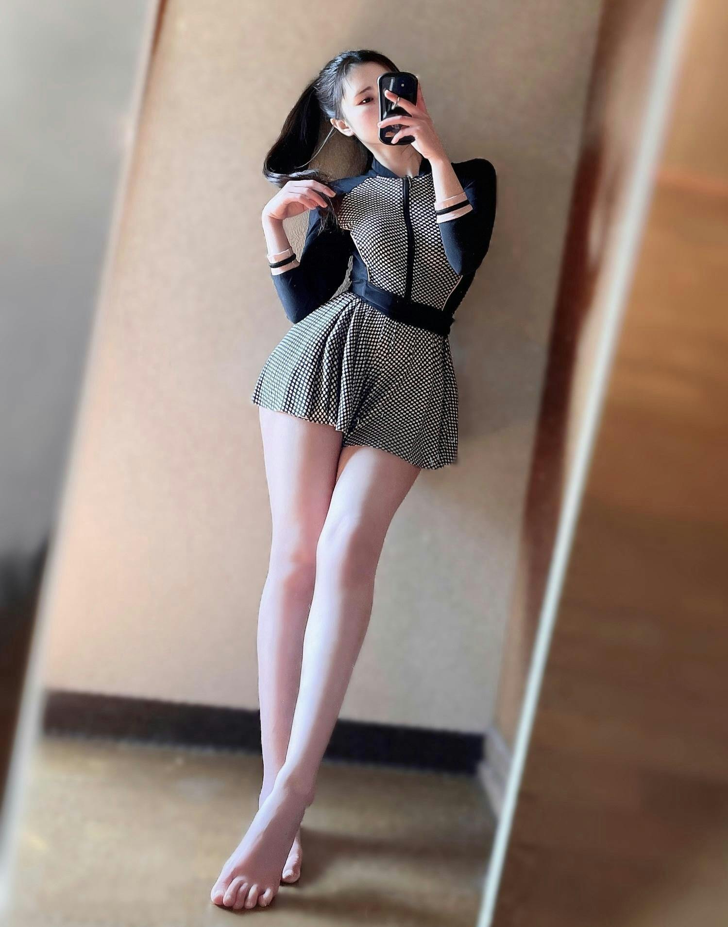 チェック柄で大人っぽいなアピールができるスカート付きワンピース水着です。